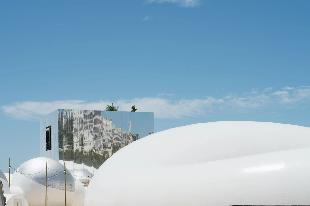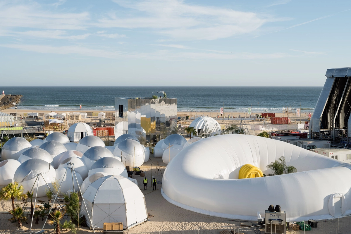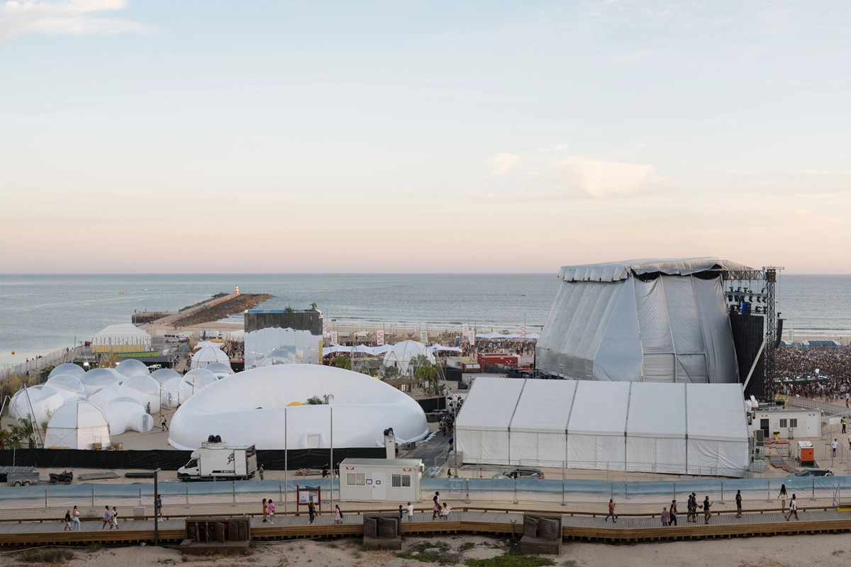 Olimpo Nômade is a portable city designed for festival artists: a lightweight, foldable oasis where they can get ready, rest, and connect after the concert. A “galactic” piece of architecture that travels from venue to venue, becoming the dream backstage for unforgettable encounters and moments.