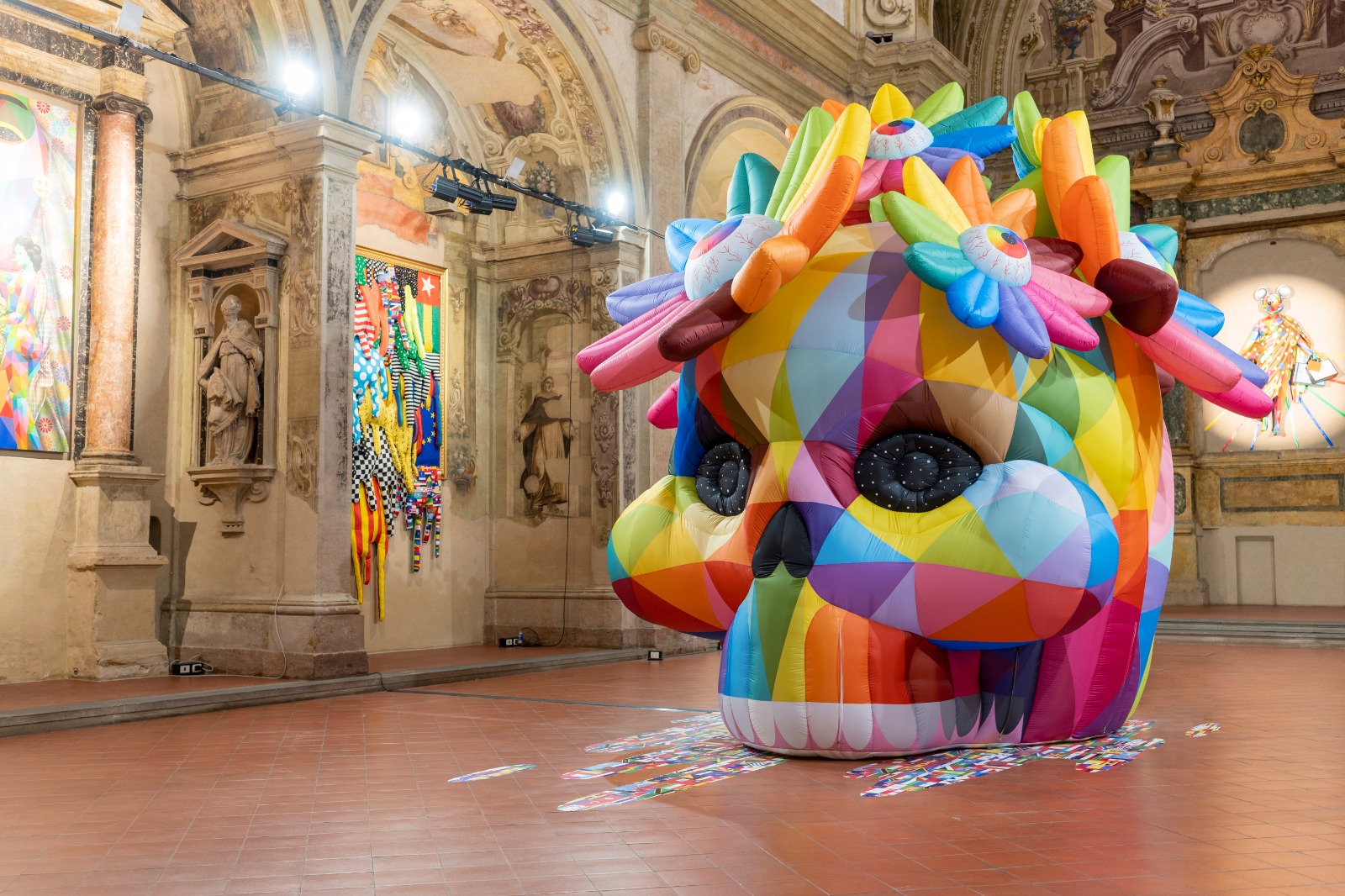 The Renaissance Metaverse is Okuda San Miguel’s first major solo exhibition in Italy, a journey that unfolds between a deconsecrated Renaissance church and the MAGMA gallery in Bologna. An immersive experience that fuses classical symbols and digital aesthetics to reflect on how art is transformed in the age of the metaverse.